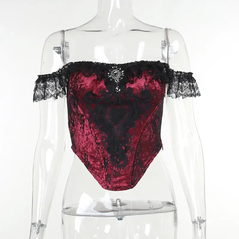 Cropped Corset Roxo Estilo Gótico Vitoriano
